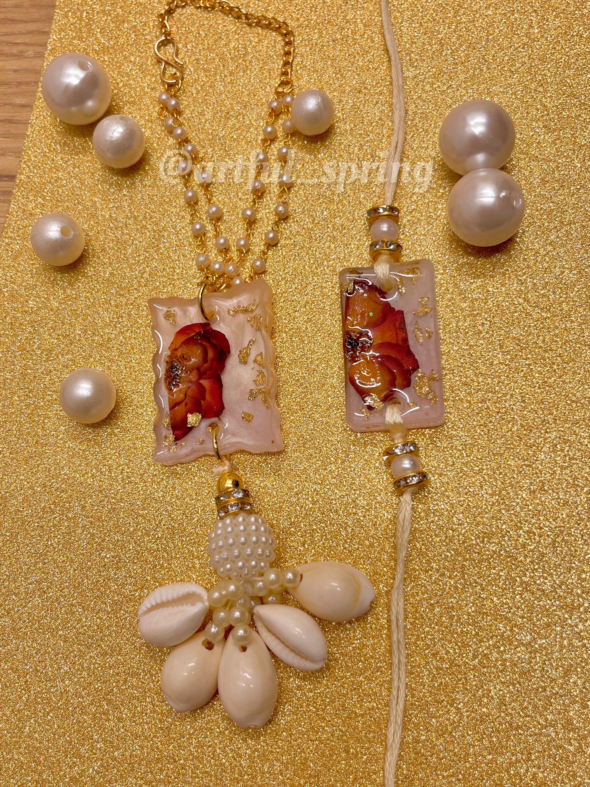 Celebrate the bond of love and protection with our Resin Rakhi — a unique handcrafted piece that combines creativity with sentiment. Each rakhi is made with glossy resin art, featuring embedded names, initials, or tiny motifs, making it a memorable keepsake for your sibling.